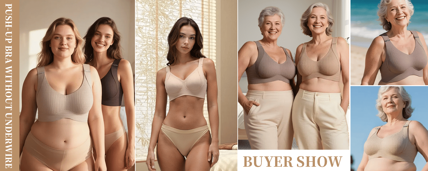 Regular bras can lead to sagging breasts, shoulder pressure and easy accumulation of back fat when worn for long periods of time, as well as poor breathability, making them very uncomfortable in the summer and during activities. Choose one of our non-ring top-supporting bras and enjoy all-day ease, natural support and a perfect backline!